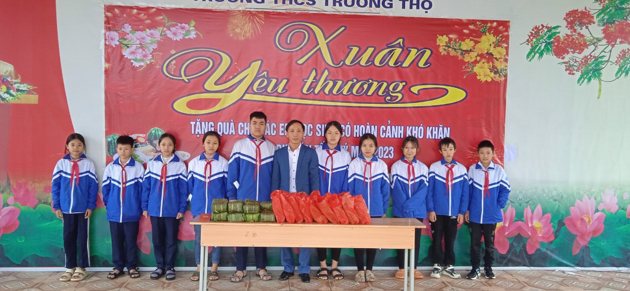 Xuân yêu thương! Sáng ngày 10/1/2023 trường THCS Trường Thọ được nhà hảo tâm Quán cơm thiện nguyện tặng 15 suất quà cho học sinh có hoàn cảnh khó khăn nhân dịp đón Tết Quý mão năm 2023. Mỗi suất quà gồm 1 bánh trưng, 2 túi chả và 1 lì xì 300k. Xin được cảm ơn các nhà hảo tâm!