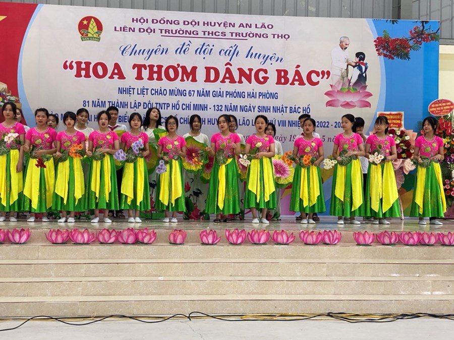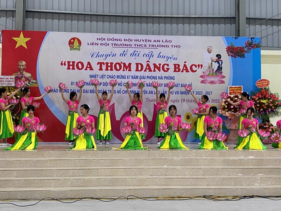 - Thực hiện kế hoạch năm học và chương trình hoạt động của đội TNTP HCM năm học 2021-2022. Sáng nay 19/5/2022 Liên đội trường THCS Trường Thọ tổ chức chuyên đề “Hoa Thơm Dâng Bác” chuyên đề đã thành công tốt đẹp. Nhà trường xin được trân trọng cảm ơn Lãnh đạo Đảng ủy- HĐND-UBND, Đoàn TNCS HCM xã Trường Thọ, Hội cha mẹ học sinh đã đến dự và có lẵng hoa chúc mừng.